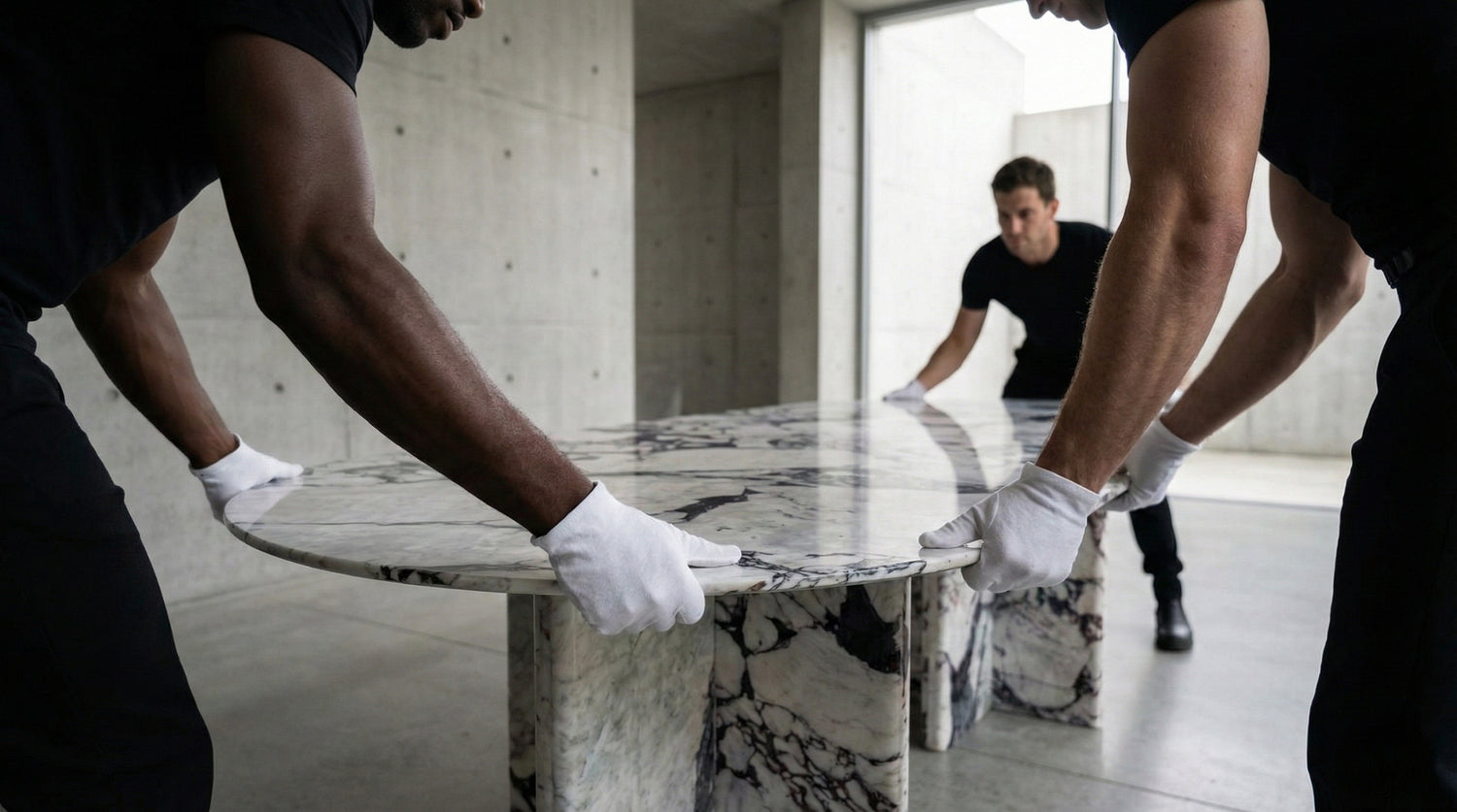Every piece is transported, loaded, and installed by experienced professionals familiar with high-end materials and finishes.