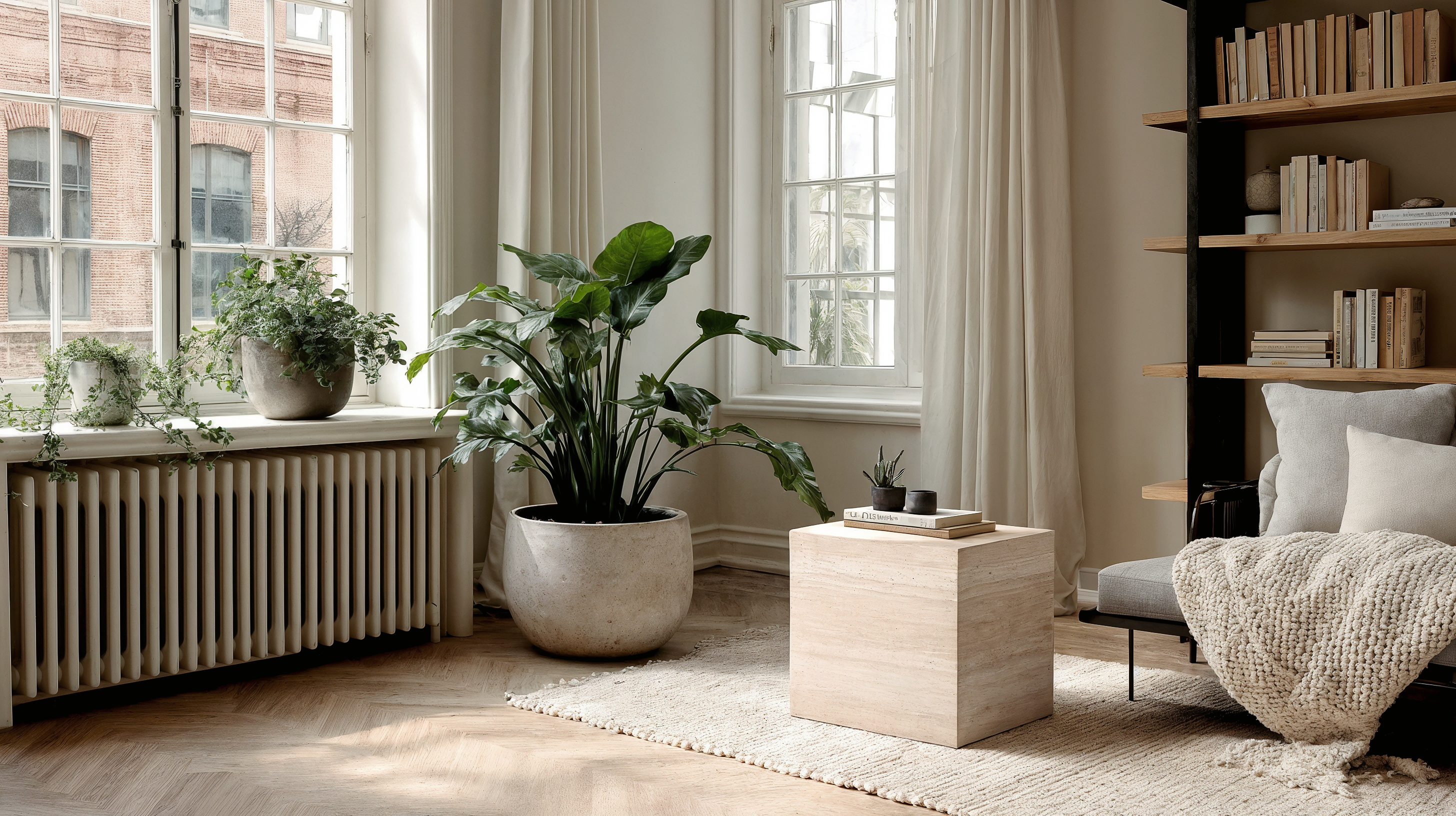 The Alessia Plinth is sculpted from solid travertine, offering an understated statement in stone.