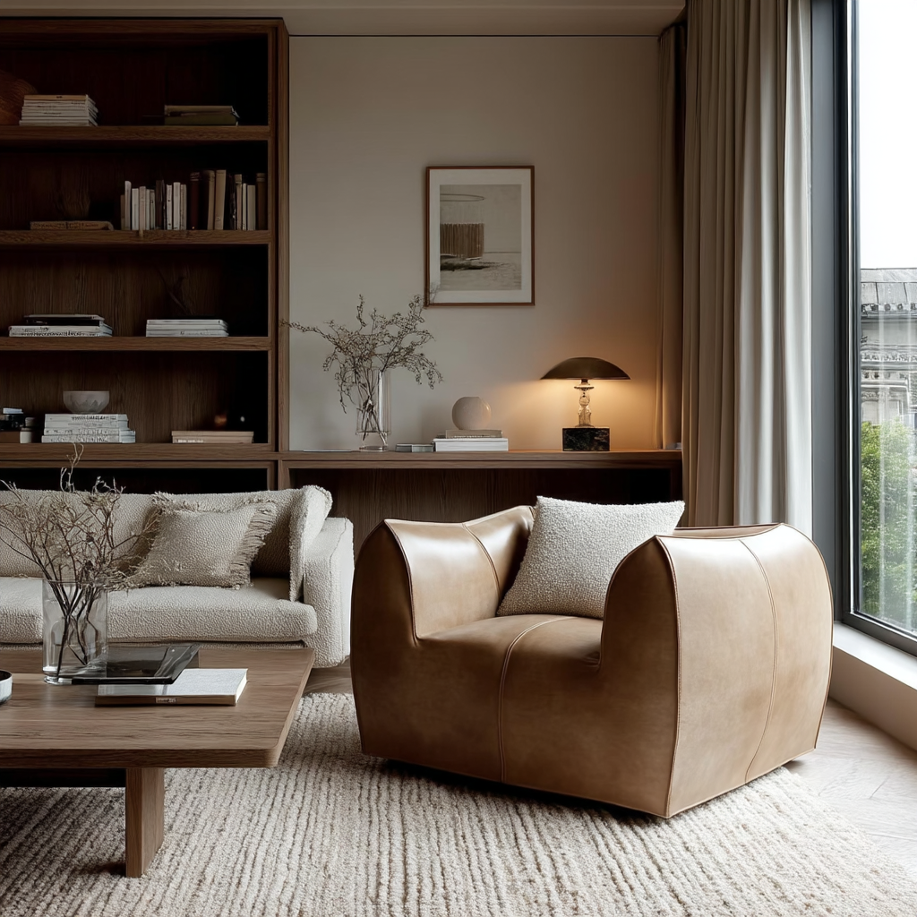 The Bambon Armchair balances comfort with structure, designed for both relaxed lounging and a fluid design