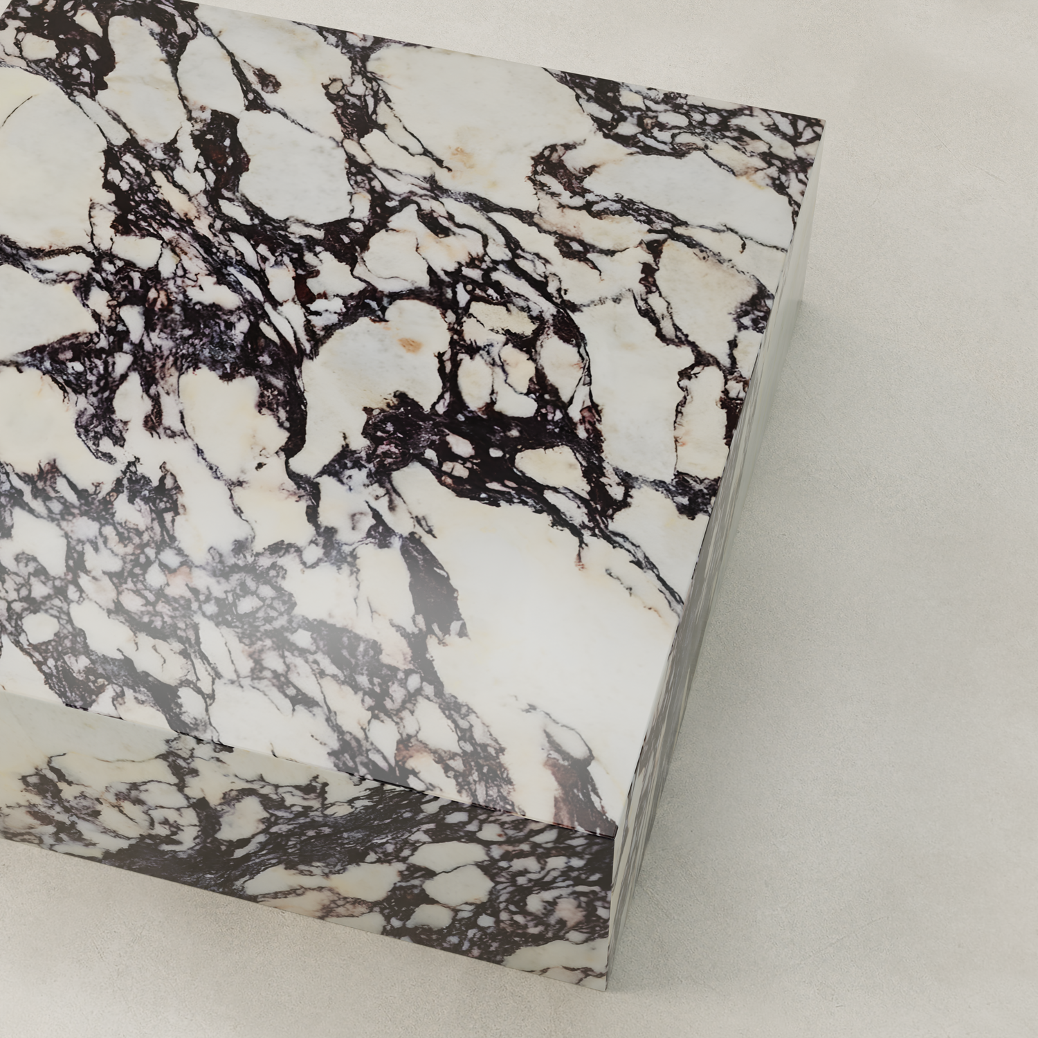 The Calacatte Marble Plinth is a statement in contrast — warm cream tones set against a bold, natural surface.