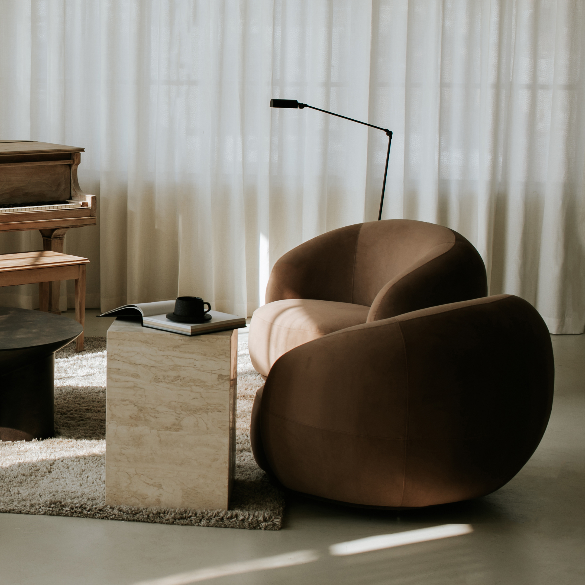 The Clara Armchair is a luxurious piece that combines striking design with unparalleled comfort.