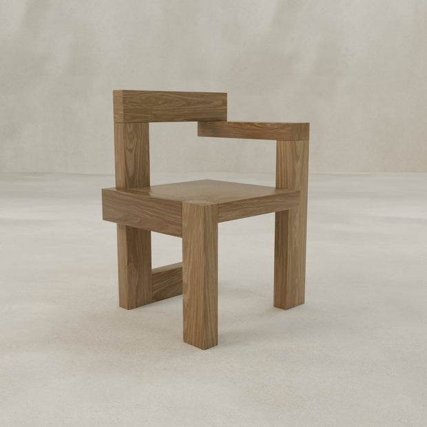 Made from solid oak, the Grafton Chair highlights the natural grain and tonal variation of the wood. Hand-sanded and sealed, the surface retains a matte, tactile finish that feels raw yet refined. Each piece carries subtle variations that give it a distinct, sculptural character.