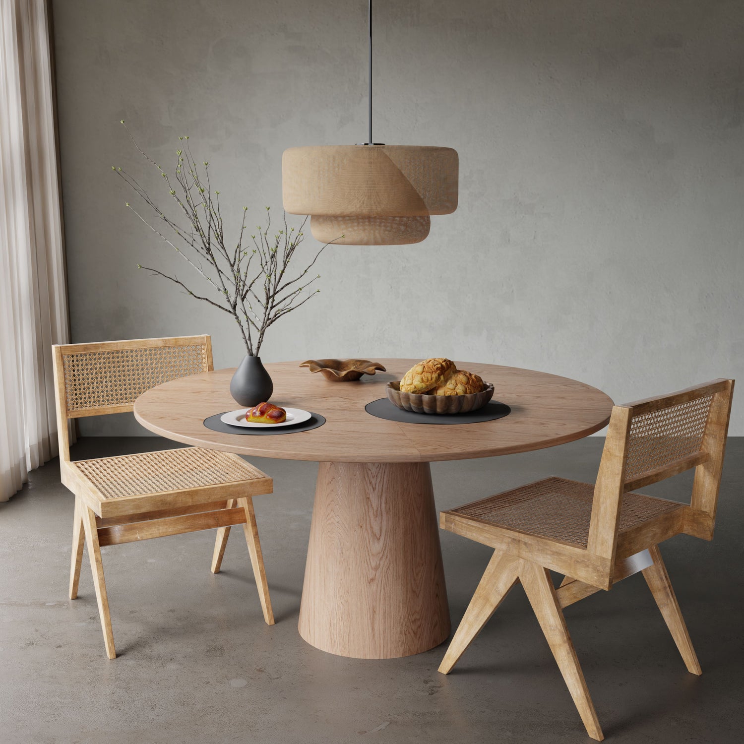 The Harlow Dining Table and Rivini Side Chairs together create a bold yet refined dining experience, blending sophisticated craftsmanship with timeless elegance and modern design. The table’s striking presence and the chairs’ handwoven rattan details offer a harmonious balance of style, texture, and enduring appeal.