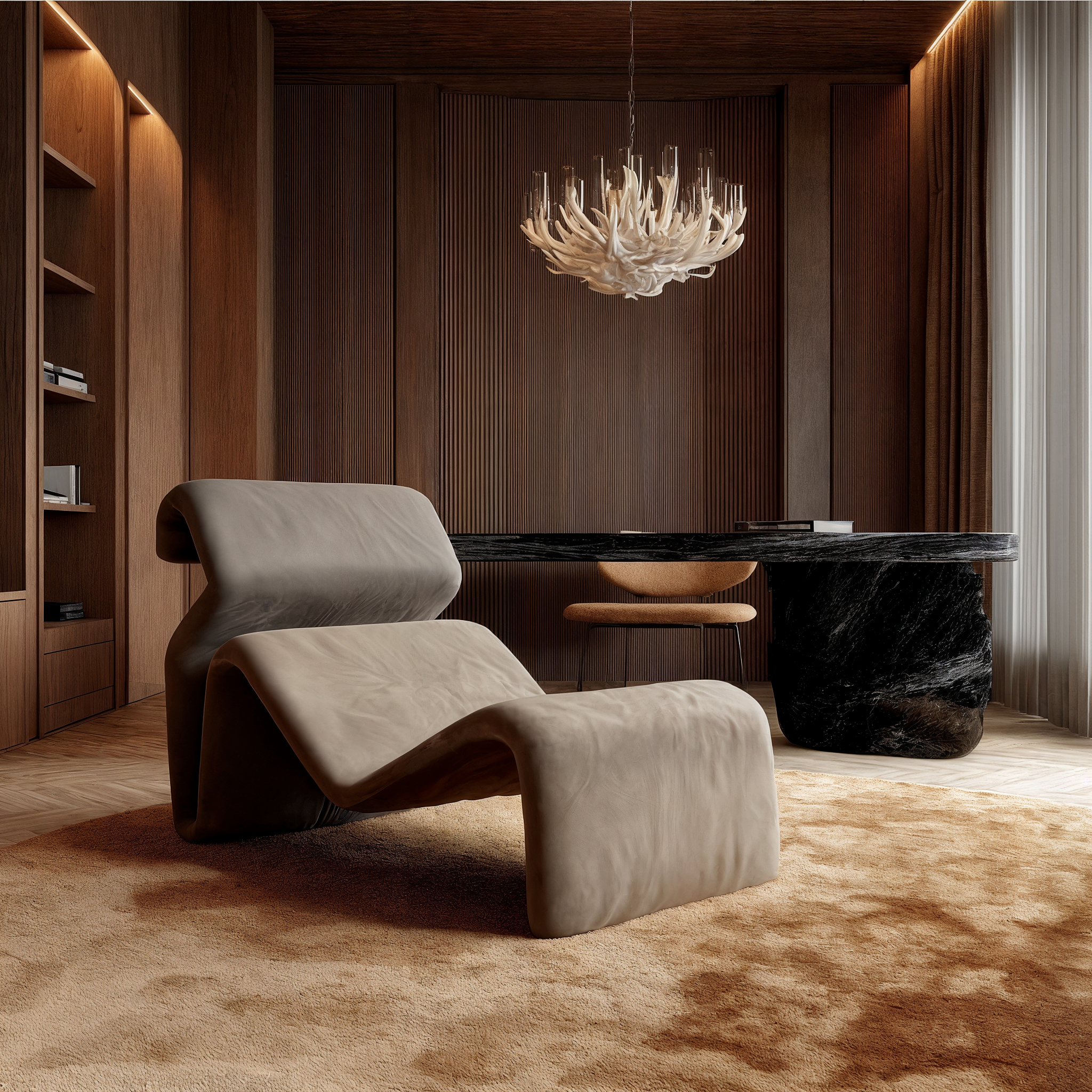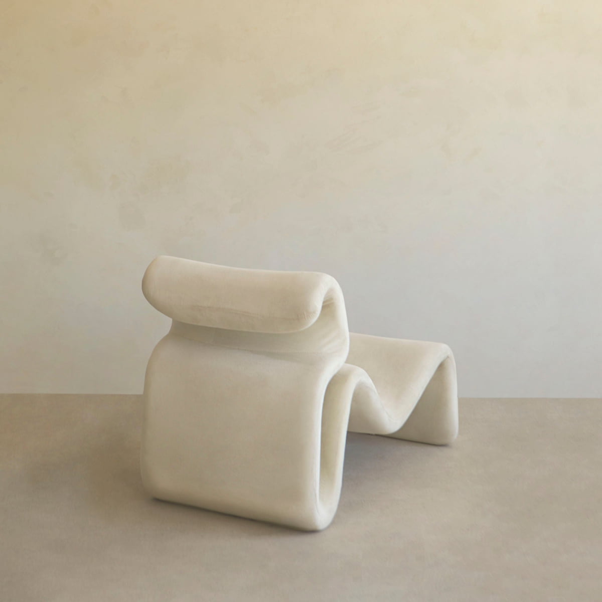 The Infinity Chair is a bold, sculptural statement piece inspired by the iconic design trends of the 1970s.