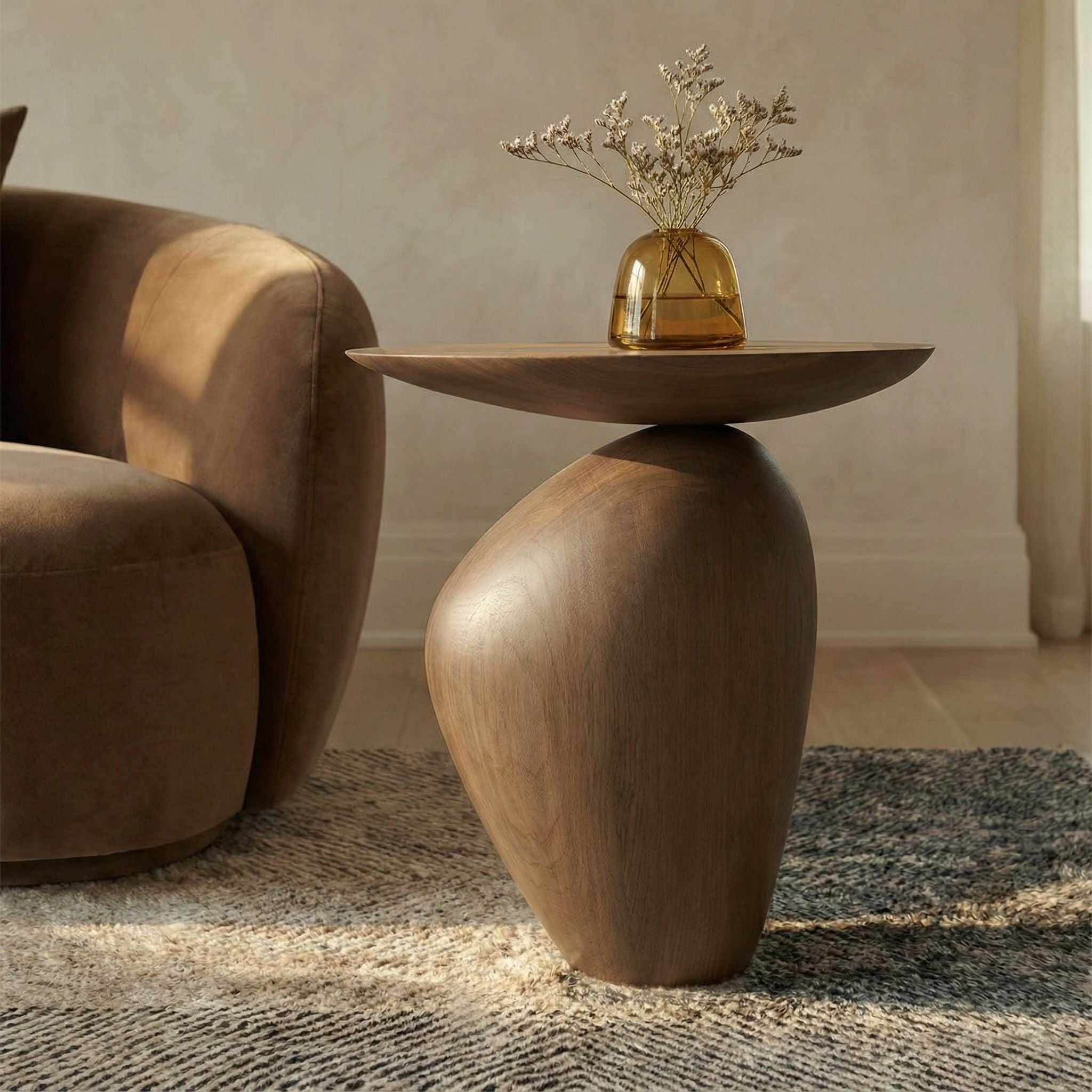 The Noyer is carved from solid wood with an intentionally organic form. Each table showcases unique grain patterns and tonal shifts, making every piece one of a kind while maintaining a refined, sculptural presence.