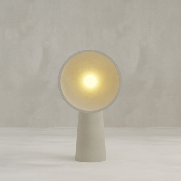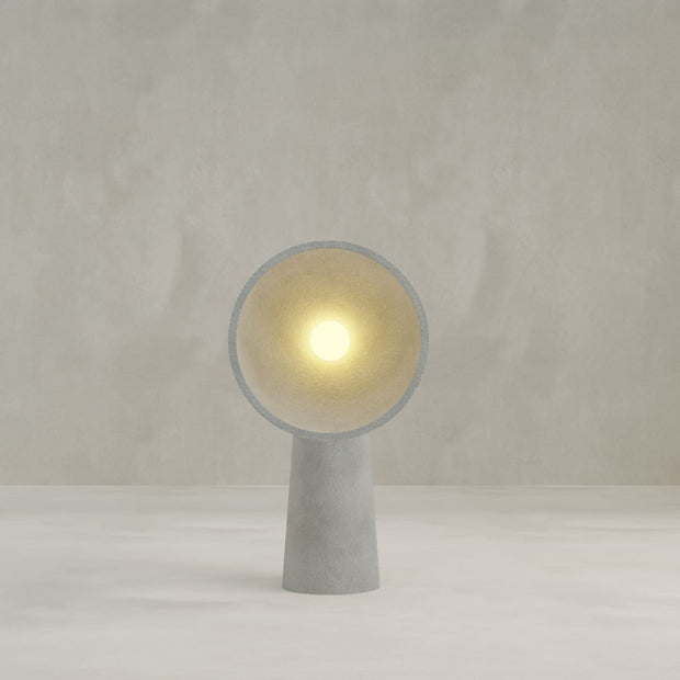 The Orbis Floor Lamp blends smooth, stone-like texture with a flared conical shade—casting a warm, directional glow while doubling as a sculptural object with grounding presence.