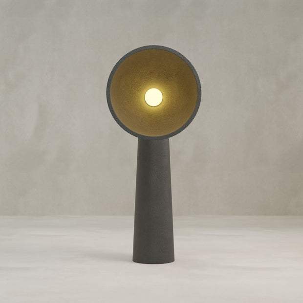 The Orbis Floor Lamp blends smooth, stone-like texture with a flared conical shade—casting a warm, directional glow while doubling as a sculptural object with grounding presence.