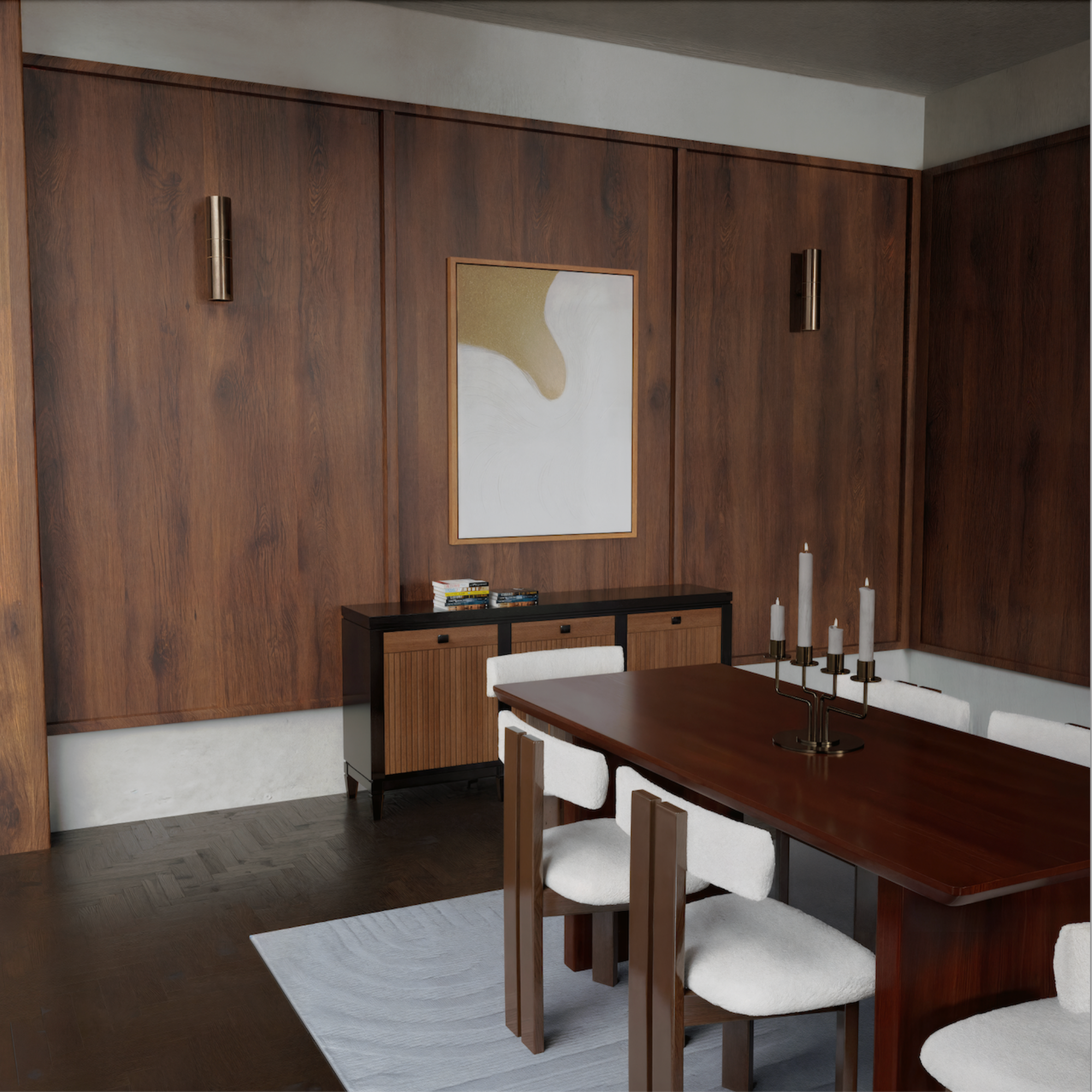 The Radley Dining Chair features a sculptural split-back frame and curved seat, wrapped in plush bouclé for tactile warmth and textural contrast.