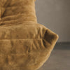 Its low posture and gathered form invite the body to settle naturally, shaping a personal zone without interrupting the surrounding space.