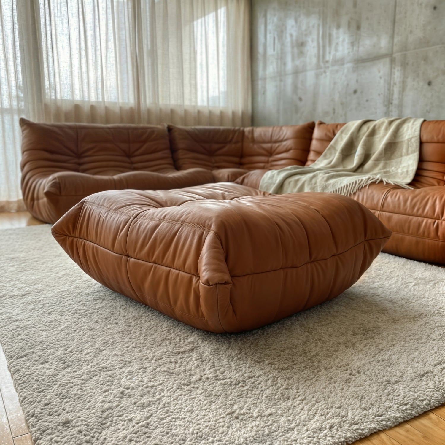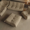 The ottoman anchors the arrangement with ease.