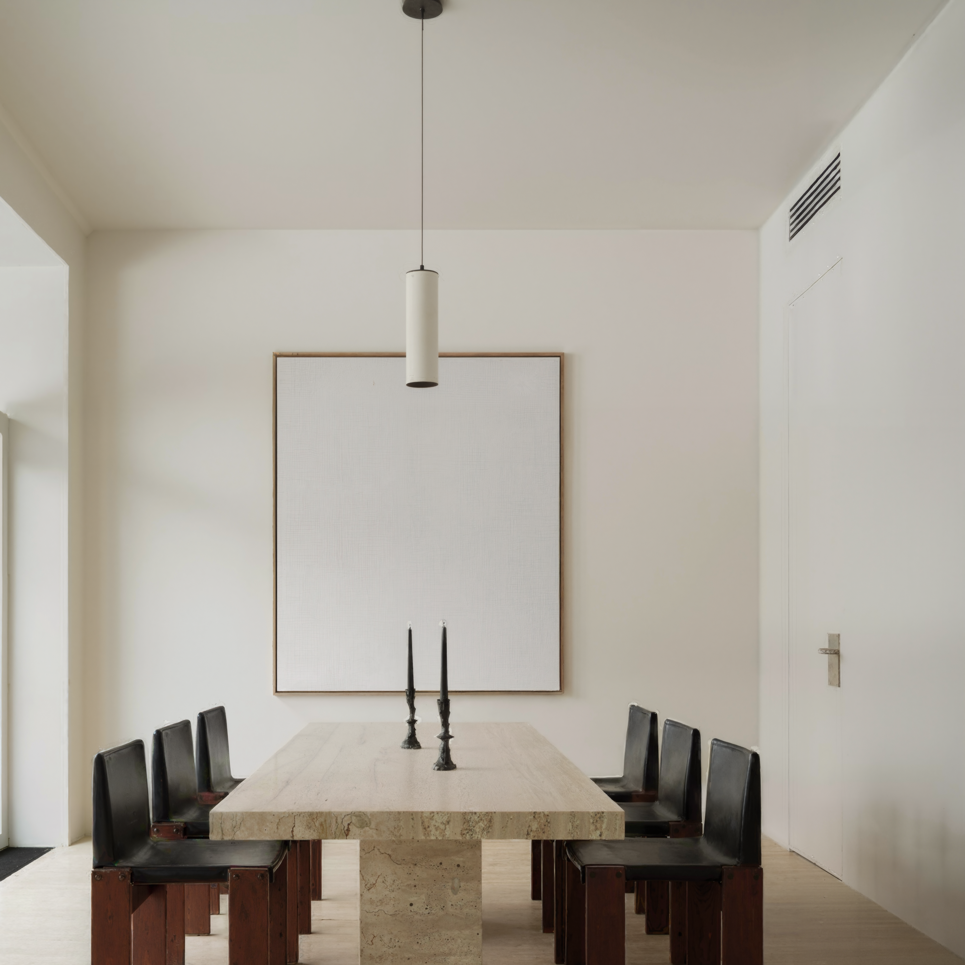 The Sable Chair features an architectural solid-wood frame paired with a thick leather sling seat, creating a grounded, sculptural profile that feels both strong and quietly refined. Its tensioned leather softens beautifully over time, and the exposed dowel details celebrate honest, precision craftsmanship.