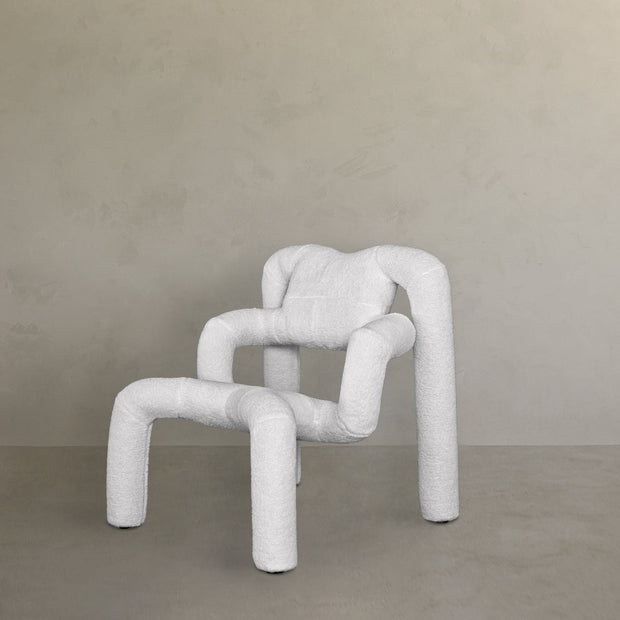 The Spider Chair stands out with unorthodox, neotenic geometry—curving tubular legs and suede upholstery offer a playful yet luxurious seating experience you can enjoy from multiple angles.
