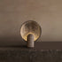 The Stella Lamp features a travertine disc and cylindrical base that cast a warm, diffused glow—its tactile organic tones and clean form bring serene ambiance and sculptural elegance.