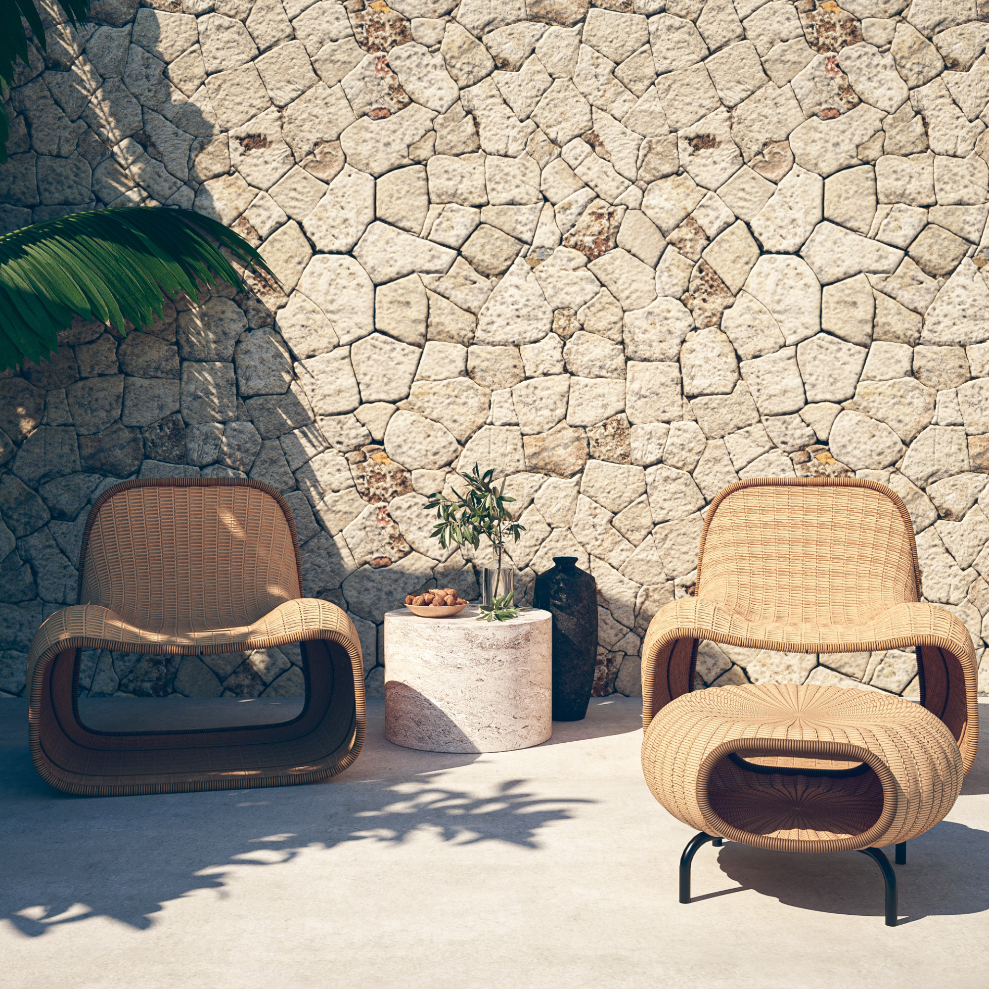 The Wicker Chair beautifully blends Mediterranean-inspired curves with modern sophistication, crafted from premium PU rattan woven over a rust-resistant aluminum frame, and designed for both indoor and outdoor luxury.